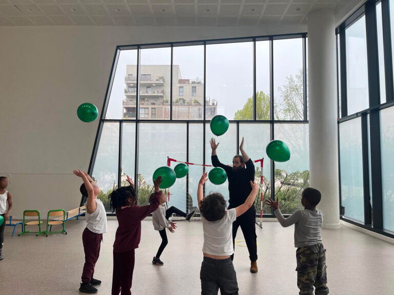 A series of workshops is offered to various groups, including women and families supported by the Le Village and Joséphine Baker social centers, STAPS students from Paris 13 University, and children and their leaders from the Simone Weil and Marcel Cachin leisure centers.